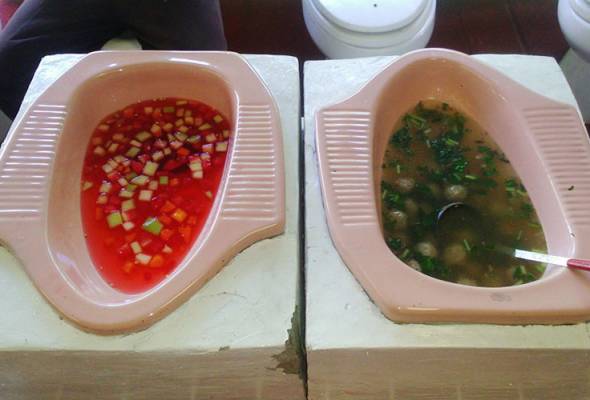 Ketika sedang melayan Facebook, saya terlihat ada posting berkenaan restoran yang menghidangkan makanan di dalam bekas berbentuk mangkuk tandas. Saya berpendapat walaupun bekas tersebut bersih namun ia adalah sesuatu yang tetap menjijikkan.